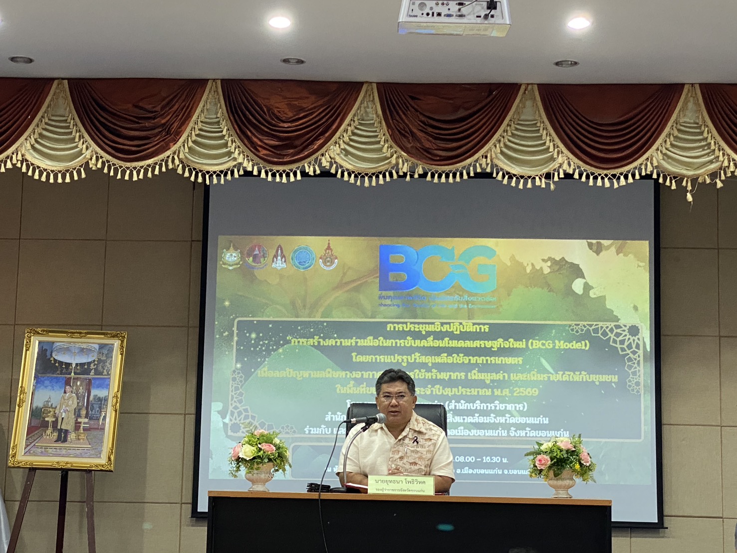 อุทยานวิทยาศาสตร์ มข. เข้าร่วมการประชุมเชิงปฏิบัติการ “การสร้างความร่วมมือในการขับเคลื่อนโมเดลเศรษฐกิจใหม่ (BCG Model) โดยการแปรรูปวัสดุเหลือใช้จากการเกษตรเพื่อลดปัญหามลพิษทางอากาศ ลดการใช้ทรัพยากร เพิ่มมูลค่า และเพิ่มรายได้ให้ชุมชน ในพื้นที่ขยายผล” ประจำปีงบประมาณ 2569