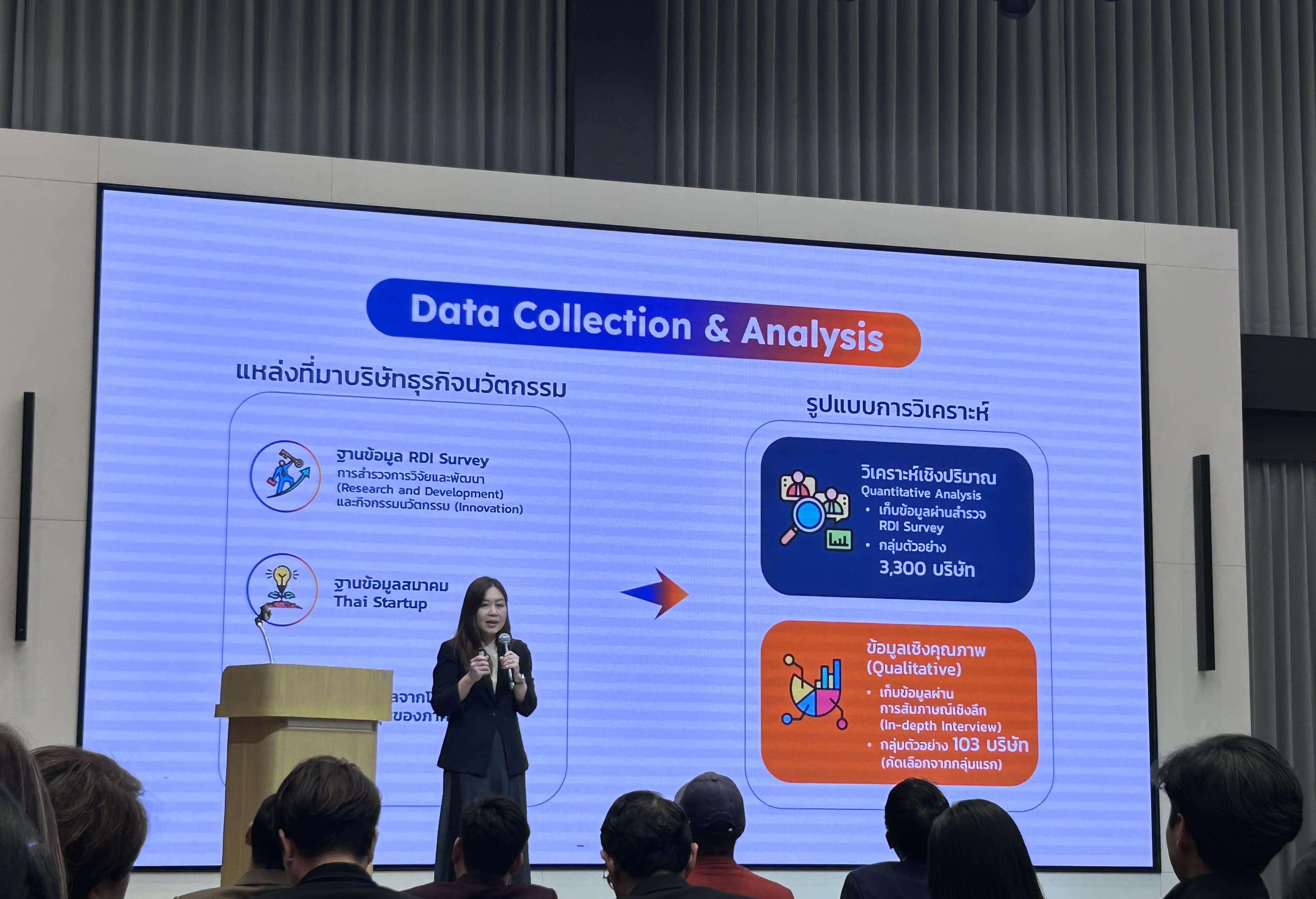 งานสัมมนาครั้งนี้ได้รับเกียรติจาก ดร.สุรชัย สถิตคุณารัตน์ ผู้อำนวยการ สอวช. เป็นประธานกล่าวเปิดงาน และ ดร.มนันยา ชุณหวุฒิยานนท์ ผู้อำนวยการฝ่ายนโยบายนวัตกรรมเพื่อพัฒนาผู้ประกอบการ สอวช. เผยแพร่ผลโครงการติดตามนโยบายและมาตรการการเพิ่มจำนวนผู้ประกอบการธุรกิจฐานนวัตกรรม (Innovation-based Entrepreneur: IDE) ตามกรอบยุทธศาสตร์ อววน. พ.ศ. 2566 - 2570 โดยตั้งเป้าหมายในปี 2570 “1,000 ล้าน 1,000 ราย” ซึ่งปัจจุบันมีธุรกิจฐานนนวัตกรรมที่มีรายได้มากกว่า 1,000 ล้านบาท จำนวน 688 ราย ประกอบด้วย 3 กลุ่ม ธุรกิจ ได้แก่ 1) กลุ่ม Innovative Enterprise 495 บริษัท เข้าร่วมการยกระดับ 127 บริษัท 2) กลุ่ม High Growth Firm (HGF) 178 บริษัท เข้าร่วมการยกระดับ 20 บริษัท และ 3) กลุ่ม Startup 15 บริษัท เข้าร่วมการยกระดับ 9 บริษัท ทั้งนี้ สอวช. ได้เสนอแนวทางส่งเสริมผ่าน 3 มาตรการหลัก เพื่อขับเคลื่อนการเติบโตของ IDE สู่ระดับโลก ได้แก่