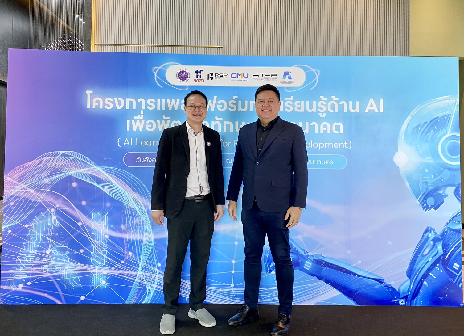 ในการเปิดงานแถลงข่าวครั้งนี้ ดร.พันธุ์เพิ่มศักดิ์ อารุณี รักษาราชการแทนรองปลัดกระทรวงการอุดมศึกษา วิทยาศาสตร์ วิจัยและนวัตกรรม (อว.) เป็นประธานเปิดงานแถลงข่าวเปิดตัวแพลตฟอร์มการเรียนรู้ AI เพื่อการพัฒนาทักษะแห่งอนาคต (AI E-Learning Platform) โดยมี รศ.ดร.ปิติวัฒน์ วัฒนชัย ผู้อำนวยการอุทยานวิทยาศาสตร์และเทคโนโลยี มหาวิทยาลัยเชียงใหม่ ศ.ดร.คมกฤต เล็กสกุล รองผู้อำนวยการสำนักงานคณะกรรมการส่งเสริมวิทยาศาสตร์ วิจัยและนวัตกรรม (สกสว.) ดร.จารุรินทร์ ภู่ระย้า ผู้เชี่ยวชาญเฉพาะด้านการขับเคลื่อนและพัฒนา อววน. สำนักงานปลัดกระทรวง อว. นายศวิต กาสุริยะ รองผู้อำนวยการศูนย์เทคโนโลยีอิเล็กทรอนิกส์และคอมพิวเตอร์แห่งชาติ (NECTEC) สวทช. และ ผศ.ดร.ธัญญานุภาพ อานันทนะ ผู้อำนวยการอุทยานวิทยาศาสตร์ภูมิภาค ภาคเหนือ พร้อมด้วยคณะผู้บริหารกระทรวง อว. ผู้บริหารและผู้แทนของอุทยานวิทยาศาสตร์ภูมิภาค และคณะผู้บริหารสถาบันอุดมศึกษาเข้าร่วมงาน