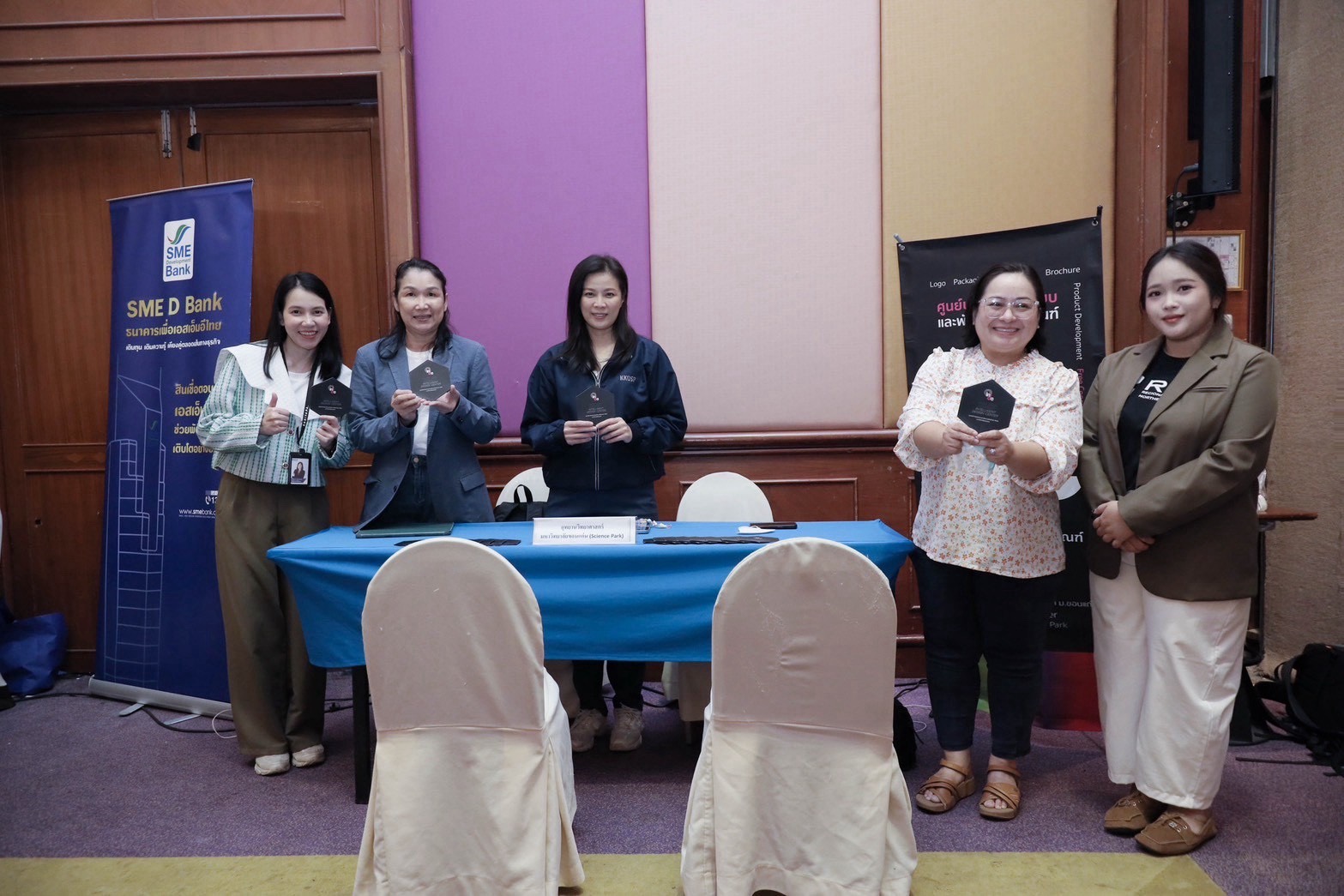 คุณธนภัทร สุวรรณทา คุณปานศิริ ธรรมศิรินิเวศ และคุณนริศรา พรมรักษา (ผลิตภัณฑ์น้ำพริกอกไก่)