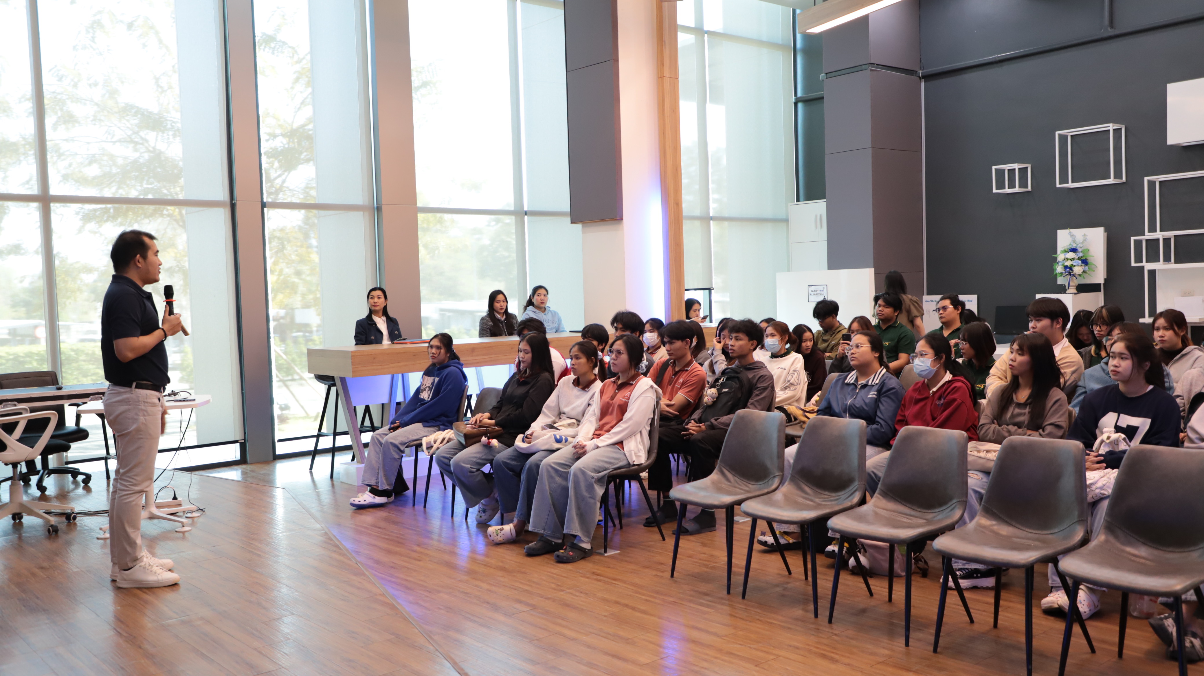 กิจกรรมในครั้งนี้เปิดโอกาสให้นักศึกษาได้เรียนรู้จากสถานการณ์จริง ผ่านการซักถามและแลกเปลี่ยนประสบการณ์กับผู้เชี่ยวชาญ เพื่อฝึกฝนทักษะที่สำคัญ ทั้งการวางแผนธุรกิจ การคิดเชิงสร้างสรรค์ และการแก้ปัญหาอย่างเป็นระบบ ตลอดจนสร้างความเข้าใจในการประยุกต์ใช้นวัตกรรมเพื่อต่อยอดในสายงานได้อย่างมีประสิทธิภาพ