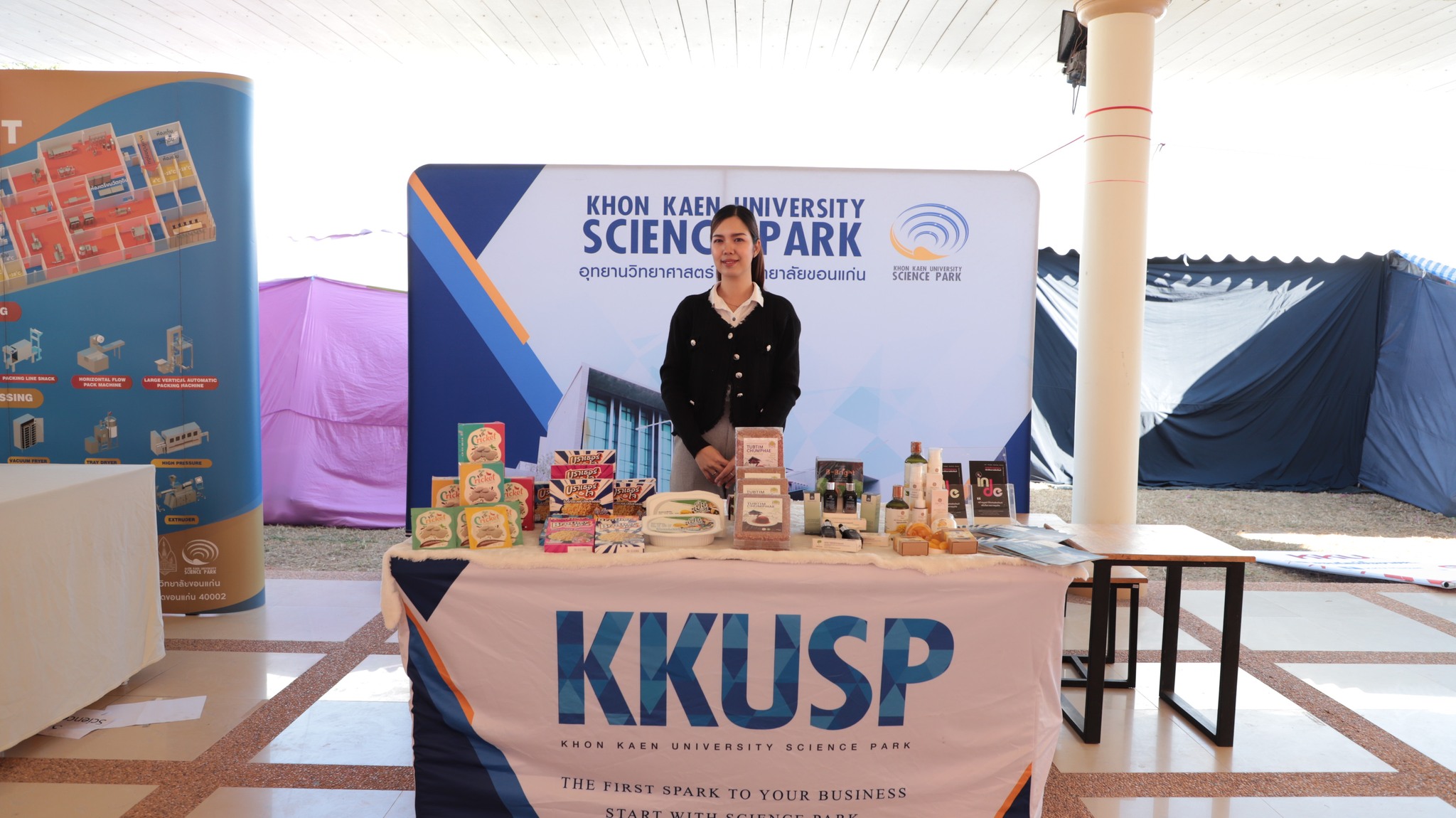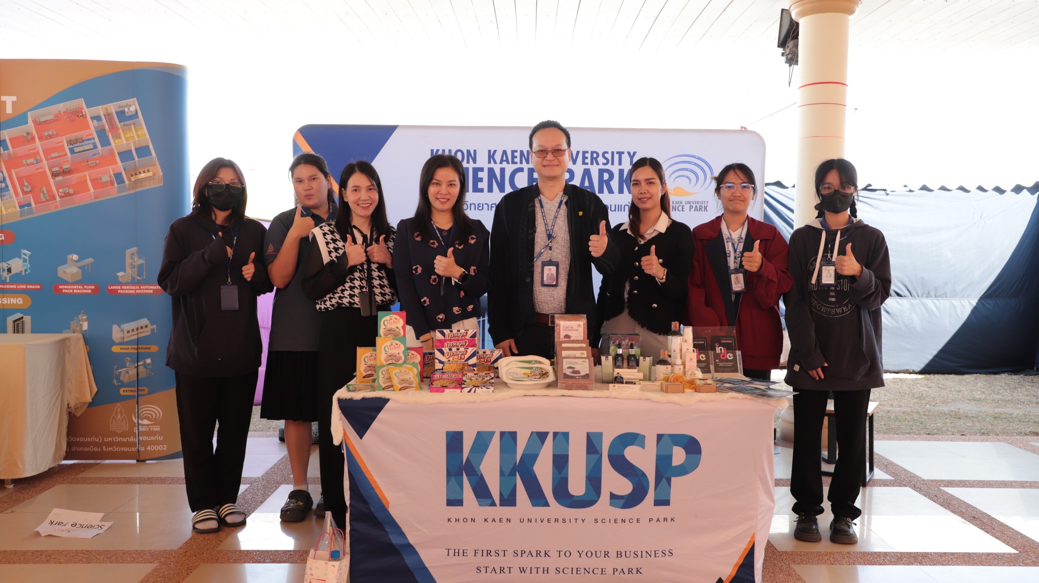 ทั้งนี้ อุทยานวิทยาศาสตร์ ร่วมออกบูทเพื่อประชาสัมพันธ์ภารกิจและบริการ ตลอดจนประชาสัมพันธ์ผลิตภัณฑ์ของผู้ประกอบการภายใต้การสนับสนุนของแผนงานต่าง ๆ รวมถึงมีโซน Business Matching สำหรับให้คำปรึกษาและรับโจทย์ความต้องการของผู้ประกอบการเบื้องต้น ณ บริเวณอาคารจตุรมุข อุทยานเทคโนโลยีการเกษตร มหาวิทยาลัยขอนแก่น