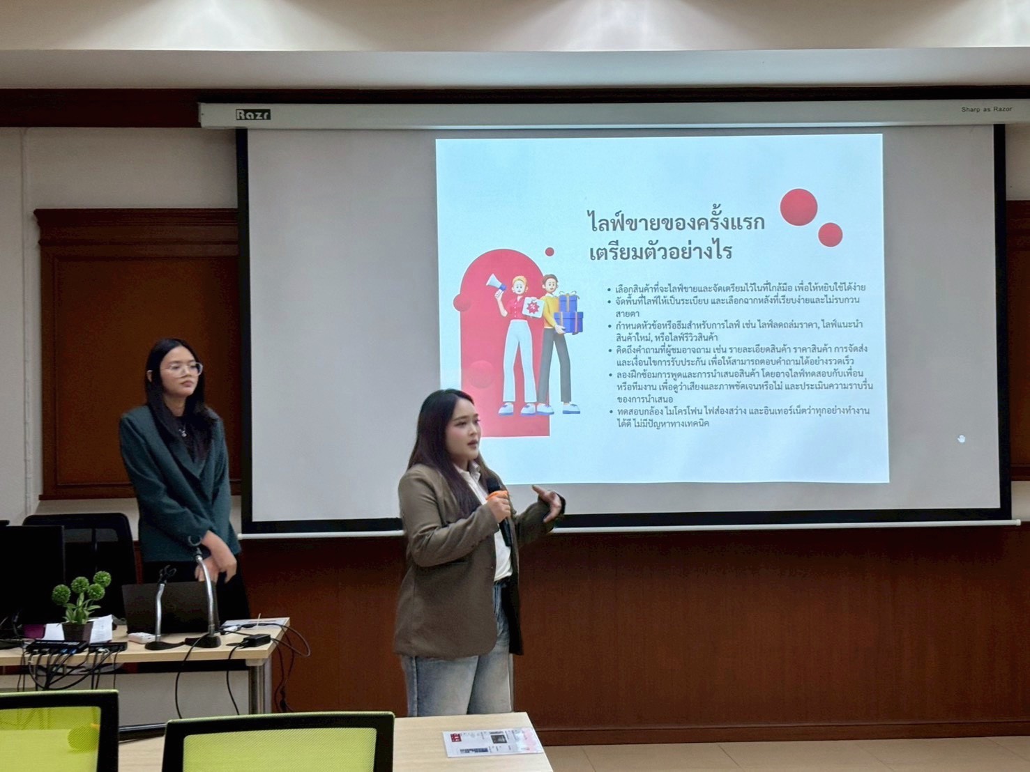 ภายในกิจกรรม นางสาวพิมพ์พรรณ เมืองศรี และ นางสาวณัฏฐาเนตร มาสังข์ นักประสานงานความร่วมมืออุตสาหกรรม อุทยานวิทยาศาสตร์ มหาวิทยาลัยขอนแก่น ร่วมบรรยายพิเศษในหัวข้อ “ตลาดดิจิทัล : เทคนิคการไลฟ์ การทำคลิป และการสื่อสารเพื่อขายของออนไลน์” โดยมุ่งเน้นการถ่ายทอดองค์ความรู้เชิงวิชาการควบคู่กับการประยุกต์ใช้เชิงปฏิบัติด้านการตลาดดิจิทัล ครอบคลุมเทคนิคการไลฟ์สด การออกแบบและผลิตสื่อวิดีโอ รวมถึงกระบวนการสื่อสารเชิงกลยุทธ์เพื่อสนับสนุนการขายบนแพลตฟอร์มออนไลน์ อันเป็นทักษะสำคัญในการพัฒนาศักยภาพกำลังคนให้สอดคล้องกับการเปลี่ยนแปลงของเศรษฐกิจดิจิทัลและการขับเคลื่อนภาคการผลิตในยุคปัจจุบัน
