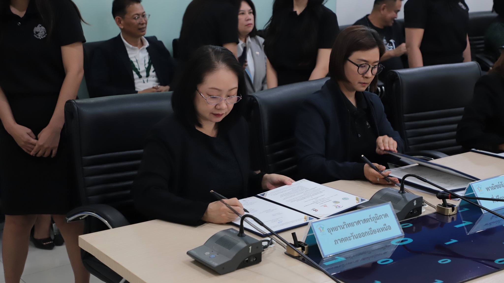 เมื่อวันที่ 27 มีนาคม 2569 ณ ห้องประชุมปักษาวายุภักษ์ สำนักงานคลังจังหวัดขอนแก่น อุทยานวิทยาศาสตร์ภูมิภาค ภาคตะวันออกเฉียงเหนือ 1 โดย ดร.อภิรชัย วงษ์ศรีวรพล ผู่อำนวยการอุทยานวิทยาศาสตร์ภูมิภาค ภาคตะวันออกเฉียงเหนือ 1 และผู้อำนวยการอุทยานวิทยาศาสตร์ มหาวิทยาลัยขอนแก่น มอบหมายให้ นางรุ่งทิพย์ สารวงษ์ รองผู้อำนวยการด้านพัฒนาคุณภาพและความยั่งยืนองค์กร ผู้แทนผู้อำนวยการอุทยานวิทยาศาสตร์ภูมิภาค ภาคตะวันออกเฉียงเหนือ 1 พร้อมด้วย นายสุวิทย์ จันทฤทธิ์ ผู้จัดการแผนกพัฒนาธุรกิจ เข้าร่วมพิธีลงนามบันทึกข้อตกลงความร่วมมือ (MOU) ในการขับเคลื่อนโครงการ “Smart Cricket Farms Khonkaen : ฟาร์มจิ้งหรีดทันสมัย ก้าวไกลสู่ตลาด” ประจำปีงบประมาณ พ.ศ. 2569