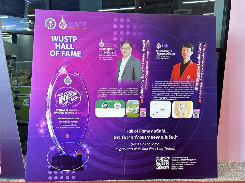ภายหลังการประชุม คณะฯ ได้เข้าร่วมพิธีเปิดกิจกรรม WALAILAK INVESTOR DAY 2026 และเยี่ยมชมกิจกรรมภายในงาน ซึ่งประกอบด้วยพื้นที่จัดแสดงผลงานวิจัยและนวัตกรรมที่มีศักยภาพต่อยอดเชิงพาณิชย์ในหลายโซน ได้แก่ Zone A: R&D & IP Investment Gateway พื้นที่เจรจาความร่วมมือด้านการวิจัย การใช้สิทธิในทรัพย์สินทางปัญญา และการให้คำปรึกษาด้านทุนสนับสนุนงานวิจัย Zone B: Innovation Startup Hub (WEDA Incubator) สำหรับประชาสัมพันธ์ระบบบ่มเพาะ การรับสมัครสมาชิก และการให้คำปรึกษาด้านการพัฒนาธุรกิจนวัตกรรม Zone C: WUSTP Hall of Fame ที่นำเสนอผลงานและเรื่องราวความสำเร็จของนักวิจัย ผู้ประกอบการ และพันธมิตรที่ได้รับรางวัล Zone D: Innovation Marketplace พื้นที่จัดแสดงและจำหน่ายสินค้านวัตกรรมจากผู้ประกอบการที่ผ่านการพัฒนาและบ่มเพาะ และ Zone E: Future Innovation Zone ซึ่งนำเสนอแนวคิดและบริการด้านโครงสร้างพื้นฐานเพื่อรองรับการพัฒนาธุรกิจนวัตกรรมในอนาคต