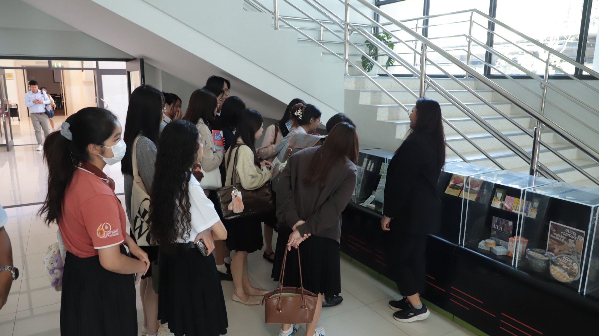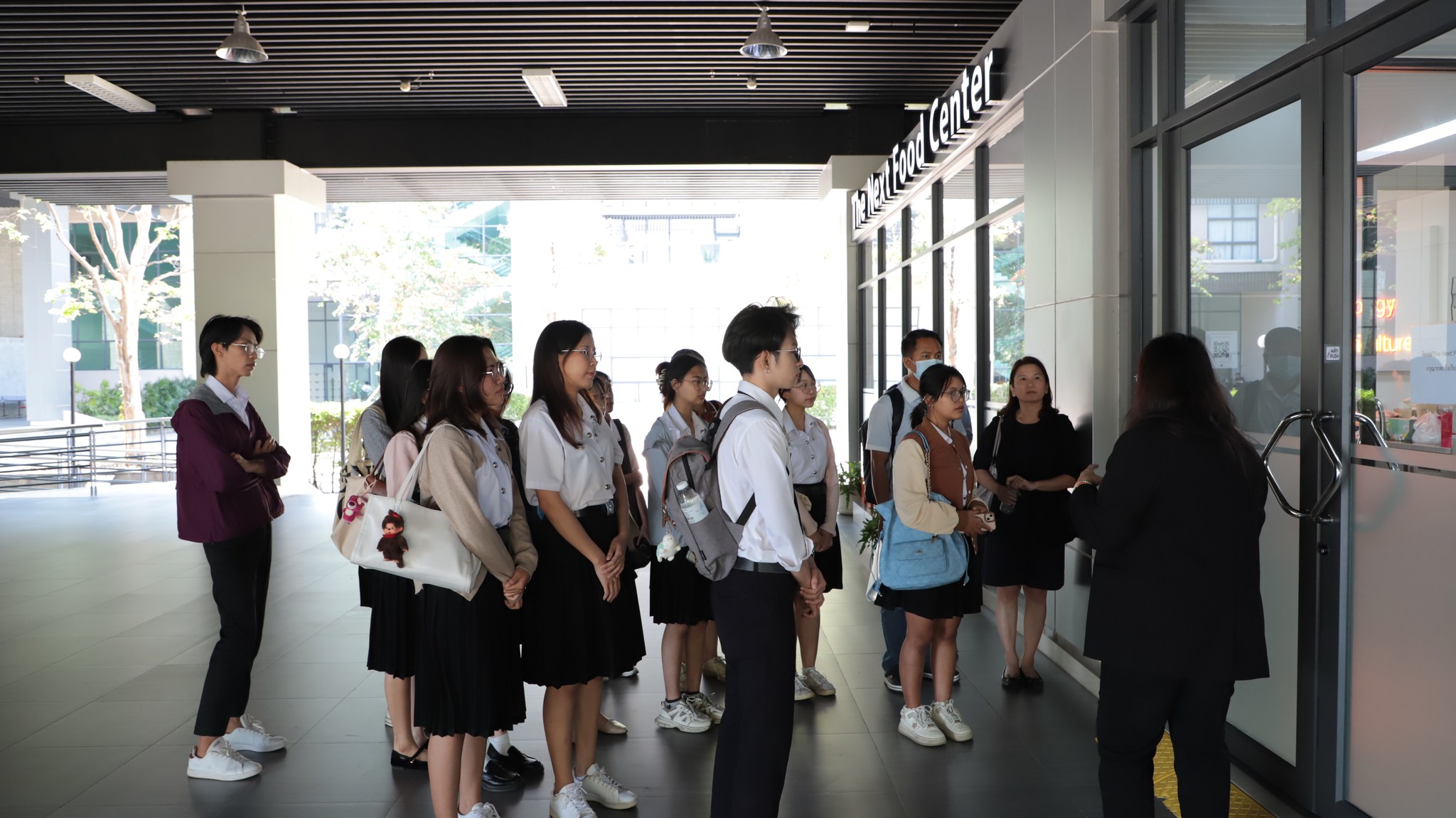 หลังจากนั้นศึกษาดูงานพื้นที่จริง โดยนางสาวรัฐอาภา ศักดิ์ศาสตร์ ผู้จัดการแผนกจัดการอาคาร นำคณะนักศึกษาเข้าเยี่ยมชมพื้นที่ภายในอาคารอำนวยการอุทยานวิทยาศาสตร์ มข. ประกอบด้วย ห้องปฏิบัติการต่างๆ และ The Next Food Center เพื่อให้นักศึกษาได้เรียนรู้เกี่ยวกับนวัตกรรมการพัฒนาอาหารเพื่อสุขภาพ และสัมผัสศักยภาพด้านบุคลากรรวมถึงเครื่องมือที่มีมาตรฐานในการสนับสนุนภาคธุรกิจ Start up และ SME อันเป็นการส่งเสริมให้นักศึกษาได้เรียนรู้จากประสบการณ์จริง เพื่อนำไปประยุกต์ใช้ในการสร้างสรรค์นวัตกรรมด้านสุขภาพให้เกิดประโยชน์ต่อสังคมสืบต่อไป